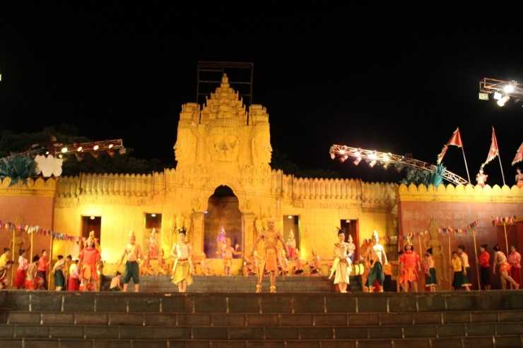 각 마을마다 목조 주택, 돌 조각품, Apsara 댄스, 캄보디아 동북부의 소수 민족 공연, 전통 결혼식, 서커스, 민속 게임, 공작 춤, 곡예 쇼, 코끼리 쇼 등 다양한 스타일의 전통 공연이 있습니다